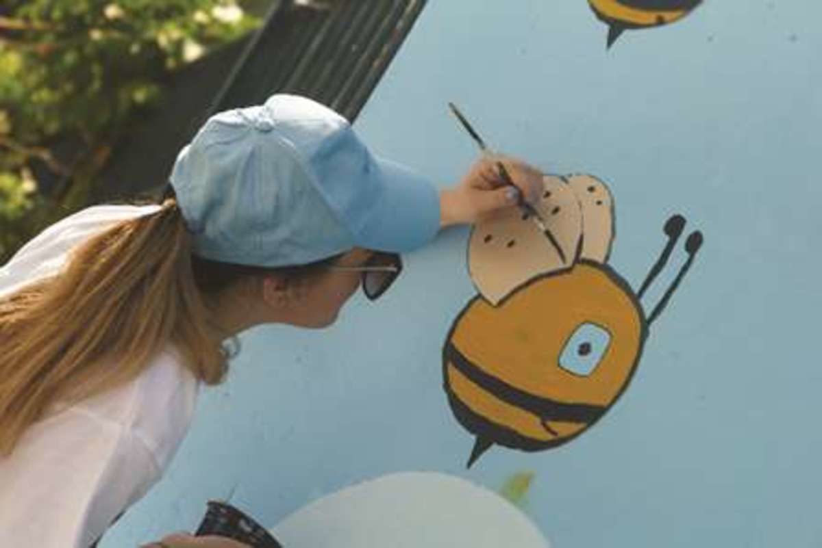Η ομάδα εθελοντών ζωγράφισε, επίσης, δημιουργικά και τους εξωτερικούς τοίχους.