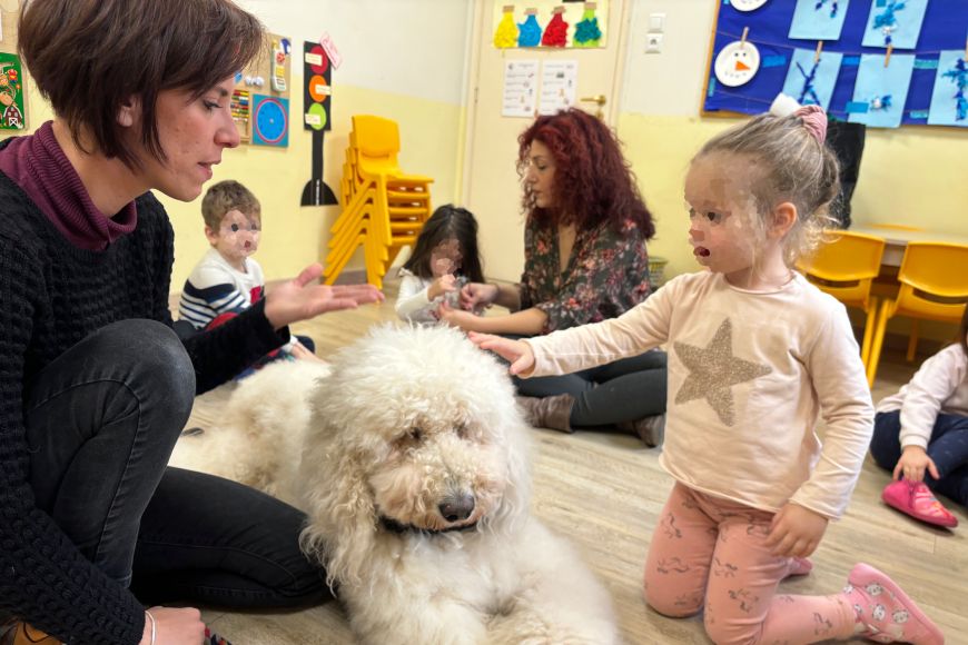 Ο σκύλος θεραπείας της πρόσφερε αγκαλιές και χάδια και την βοήθησε να αντιμετωπίσει πιο ανάλαφρα μια βαριά καθημερινότητα, που για εκείνη έχει γίνει το τελευταίο διάστημα μια μονότονη ακολουθία δύσκολων στιγμών.