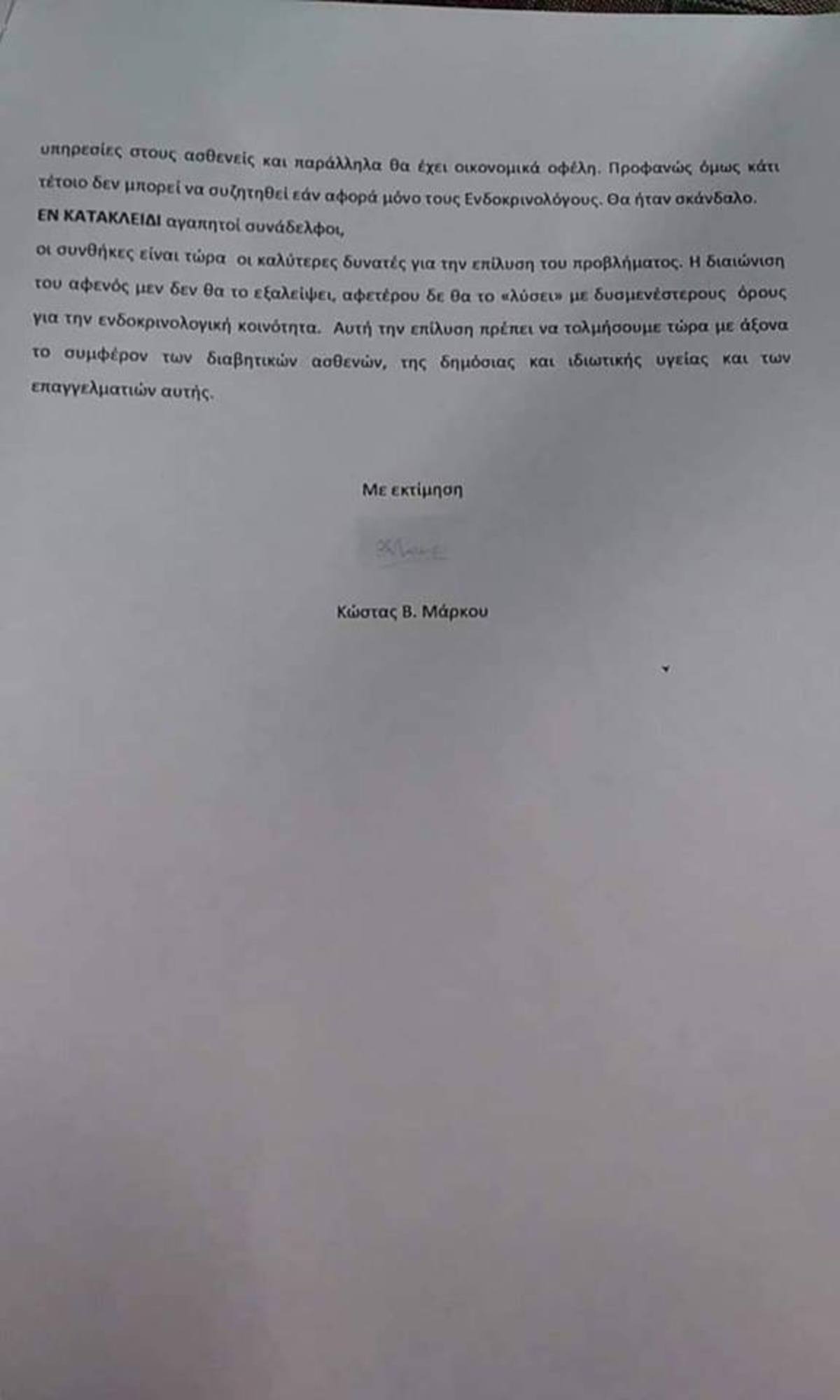 «Οι όροι για την ενδοκρινολογική κοινότητα» απασχολούν πολύ τον κ. Μάρκου… Κύριε Μάρκου διαλέξτε με ποιο καπέλο διαχειρίζεστε τα κρίσιμα θέματα της δημόσιας υγείας, που κάποιοι σας ανέθεσαν… Με αυτό του Πρόεδρου του ΚΕΣΥ ή του καθηγητή της ενδοκρινολογίας;