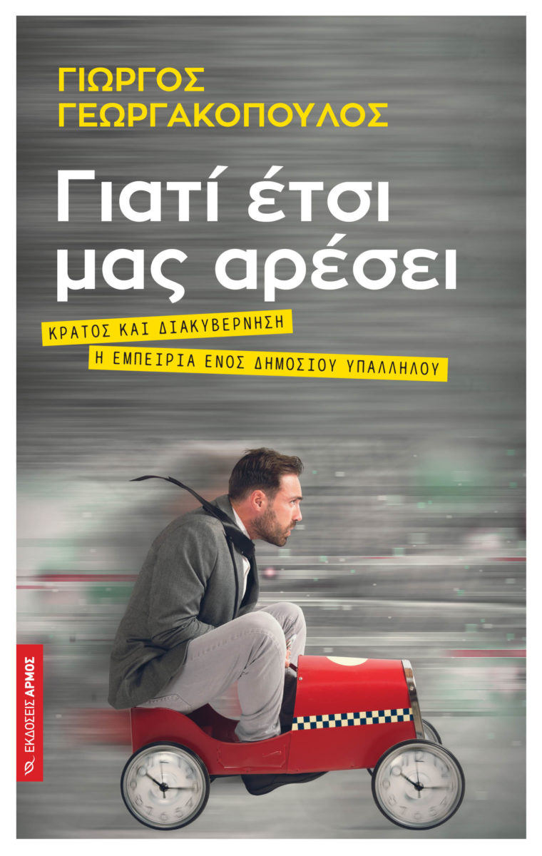 «Γιατί έτσι μας αρέσει»! Ένα βιβλίο με νόημα… ΕΙΔΗΣΕΙΣ 04.04.2016 | 14:35 Βιβλίο για την πολυετή εμπειρία του στην δημόσια διοίκηση έγραψε το στέλεχος του υπουργείου Υγείας, Γιώργος Γεωργακόπουλος. Διαβάστε στο newsit. ΔΙΑΒΑΣΤΕ ΑΚΟΜΗ