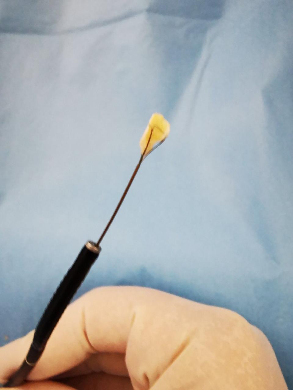 Καθώς η μεταφορά του Οδυσσέα στην Αθήνα κρίθηκε από τους ιατρούς εξαιρετικά επικίνδυνη, χθες Τρίτη έγινε νέα προσπάθεια κατά την οποία χρησιμοποιήθηκαν υλικά από τα επεμβατικά τμήματα του Νοσοκομείου (Fogarty, nitinol stone extractor κλπ) και έγινε με επιτυχία η αφαίρεση του ξένου σώματος.