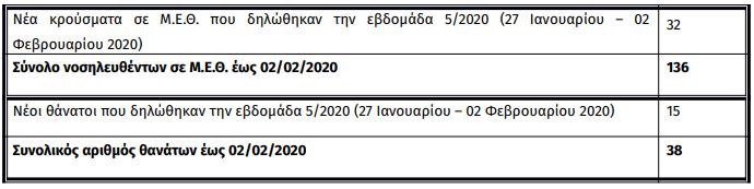 «Κατά την εβδομάδα 5/2020 (27 Ιανουαρίου – 02 Φεβρουαρίου 2020), η θνησιμότητα στην Ελλάδα από όλες τις αιτίες παρουσίασε αύξηση, στους 2.940 θανάτους ή +2,7 σταθερές αποκλίσεις (SD) πάνω από τo αναμενόμενo για την εποχή. Μεγάλο μέρος αυτής της αύξησης εκτιμάται ότι οφείλεται στη γρίπη. Παρόμοιες αυξήσεις στη θνησιμότητα έχουν παρατηρηθεί και σε προηγούμενα έτη, ιδιαίτερα σε περιόδους με επικράτηση του ιού γρίπης Α(Η3Ν2)»