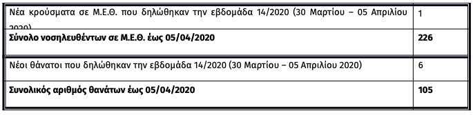 Σύμφωνα με την επιδημιολογική καταγραφή του ΕΟΔΥ για τη γρίπη, την εβδομάδα από 30 Μαρτίου έως 05 Απριλίου 2020, στην Ελλάδα έχουν καταγραφεί 6 νέοι θάνατοι και από την αρχή της επιδημίας 105 θάνατοι από εργαστηριακά επιβεβαιωμένη γρίπη.