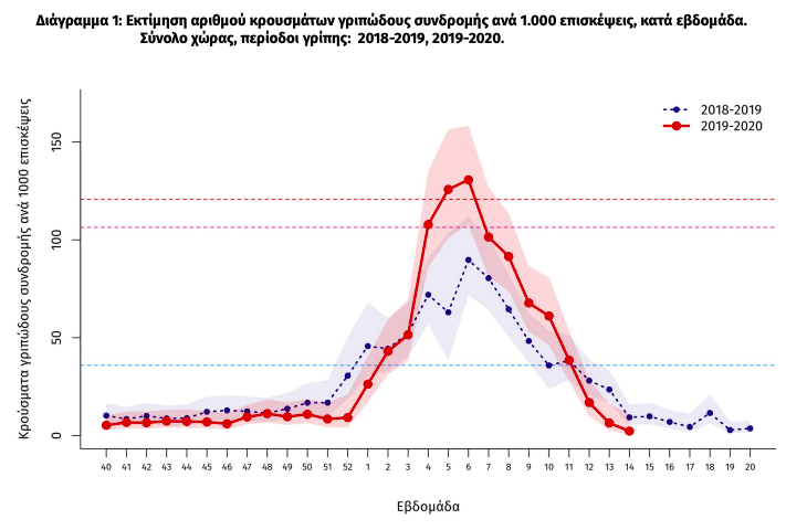 Δείτε το σχεδιάγραμμα του ΕΟΔΥ με την πορεία της επιδημίας της γρίπης στη χώρα το 2019-2020 σε σύγκριση με το προηγούμενο έτος 2018-2019