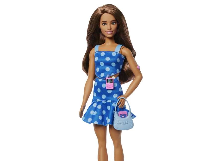 Εκτός από την αντλία ινσουλίνης που προσαρμόζεται στη μέση της νέας Barbie, η καστανόξανθη καλλονή έχει στο μπράτσο της ένα μόνιτορ συνεχούς μέτρησης της γλυκόζης: ένα κουμπί που βρίσκεται πάνω σε μία ροζ καρδιά. Το κινητό της τηλέφωνο εμφανίζει μια εφαρμογή που δείχνει τις μετρήσεις της γλυκόζης της. Έχει επίσης ένα γαλάζιο τσαντάκι για να κρατάει τις προμήθειες και τα σνακ που τη βοηθούν να διαχειρίζεται το σάκχαρό της κατά τη διάρκεια της ημέρας. Και, όπως θα ήταν αναμενόμενο, το τσαντάκι ταιριάζει, φυσικά, με τα παπούτσια της.