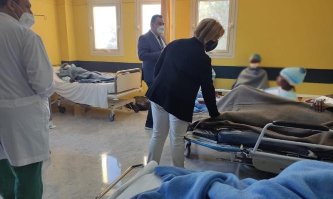 Η Μίνα Γκάγκα στο Νοσοκομείο Μυτιλήνης: Επισκέφθηκε μετανάστριες από το ναυάγιο στη Λέσβο