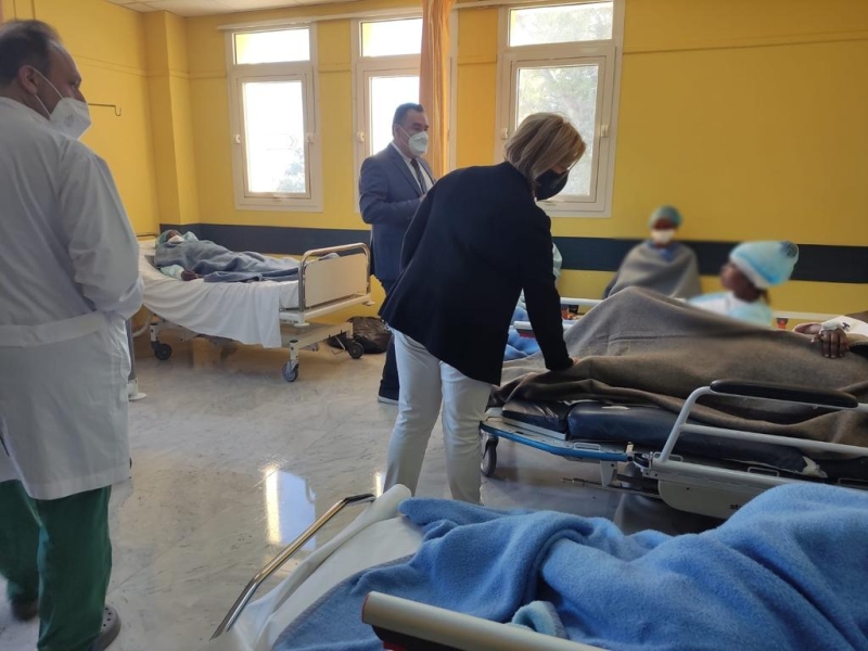 Η αναπληρώτρια Υπουργός επισκέφθηκε πρώτα το Τμήμα Επειγόντων Περιστατικών, όπου είδε και συνομίλησε με τις γυναίκες μετανάστριες που νοσηλεύονται εκεί μετά από το ναυάγιο που συνέβη χθες το βράδυ στο Αιγαίο.
