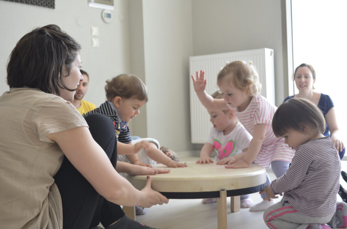 Στο πρόγραμμα για την μουσική ανάπτυξη των βρεφών και των νηπίων που λειτουργεί στη Θεσσαλονίκη, οι γονείς φέρνουν τα παιδάκια τους μια φορά την εβδομάδα για έναν κύκλο δώδεκα εβδομάδων.