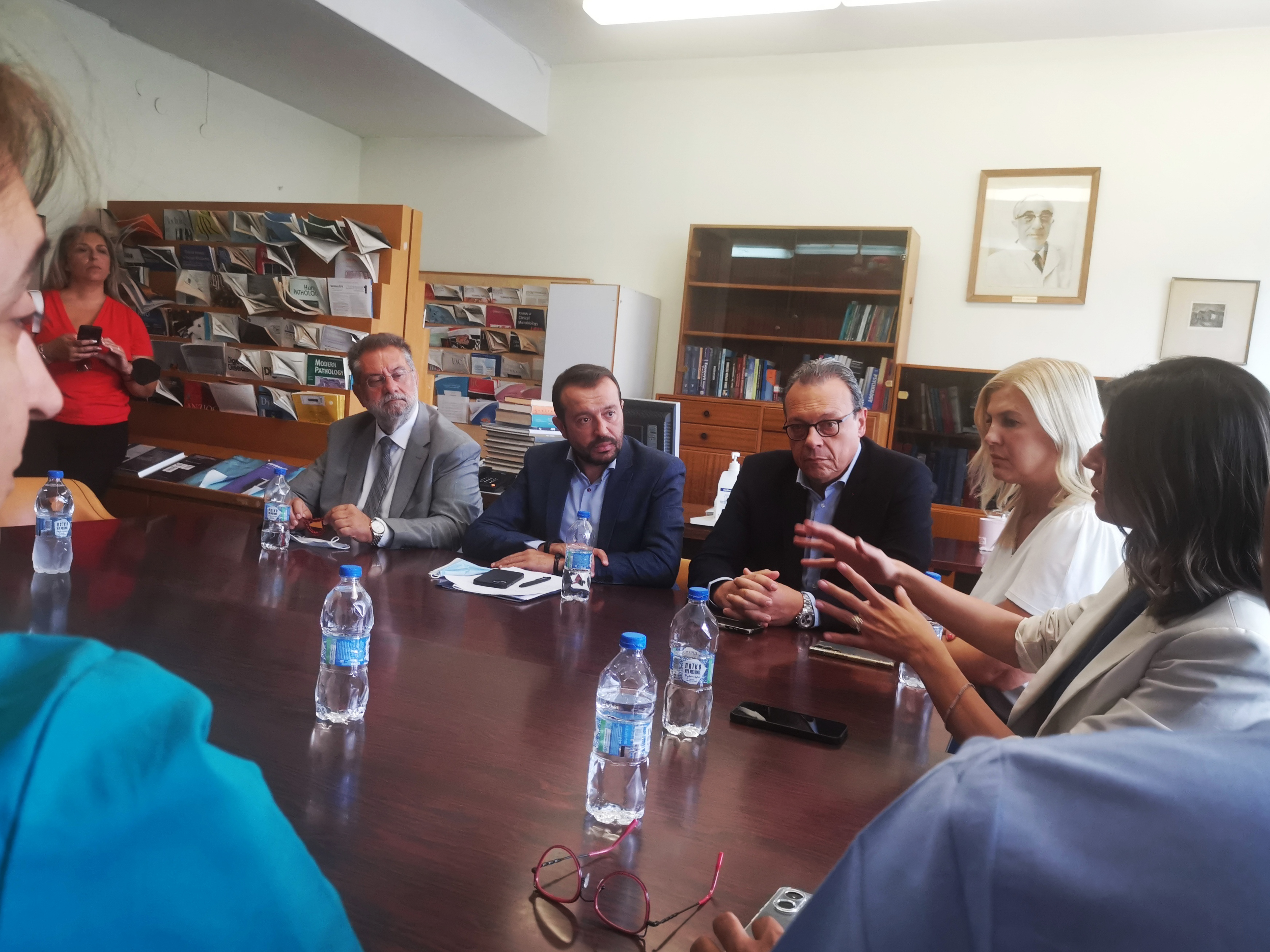 Ο κ. Παππάς, συνοδευόμενος από τον βουλευτή Αχαϊας και τομεάρχη Υγείας, Ανδρέα Παναγιωτόπουλο, και τους βουλευτές Σωκράτη Φάμελλο, Κατερίνα Νοτοπούλου και Ράνια Θρασκιά, επισκέφθηκε το Θεαγένειο Νοσοκομείο και συναντήθηκε με εκπροσώπους του σωματείου των εργαζομένων, των εργαζομένων μέσω ΟΑΕΔ και τη διοίκηση του νοσοκομείου.