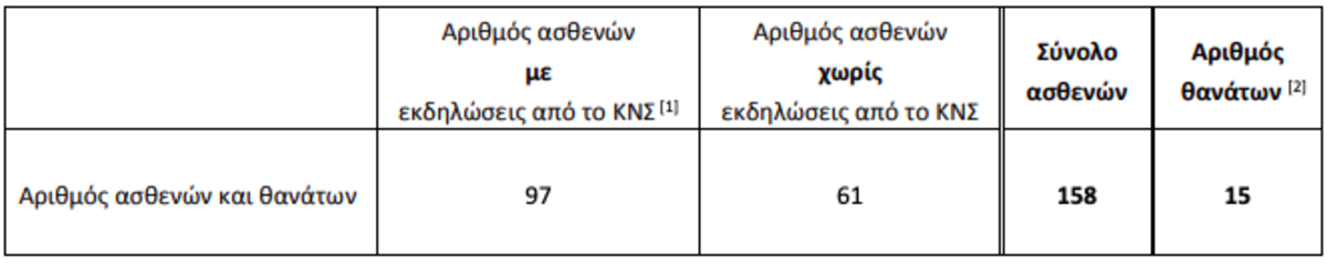 Οι 15 θάνατοι ασθενών με λοίμωξη από τον ιό, ήταν ηλικίας άνω των 60 ετών (διάμεση ηλικία θανόντων=81 έτη).