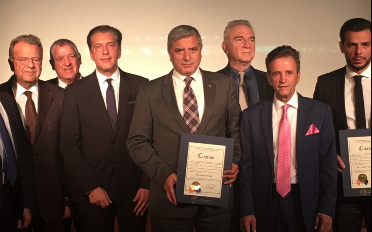 Στη συνέχεια ακολούθησε η βράβευση των κ.κ. Γ. Πατούλη για το ανθρωπιστικό και κοινωνικό του έργο, Π. Γαλάτουλα για τη προσφορά του στον Απόδημο Ελληνισμό και Β. Αποστολόπουλο, για την προσφορά του στην Ομογένεια.