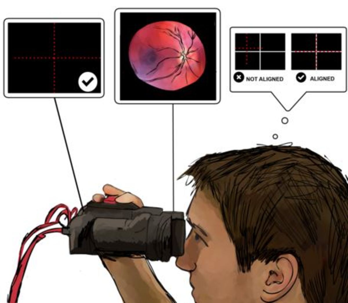 Η eyeSelfie, όπως την ονόμασαν οι επιστήμονες, μοιάζει με κυάλια τα οποία μπορούν να απεικονίσουν τον αμφιβληστροειδή χιτώνα, το οπτικό νεύρο και το αγγειακό δίκτυο κάθε ματιού ξεχωριστά.