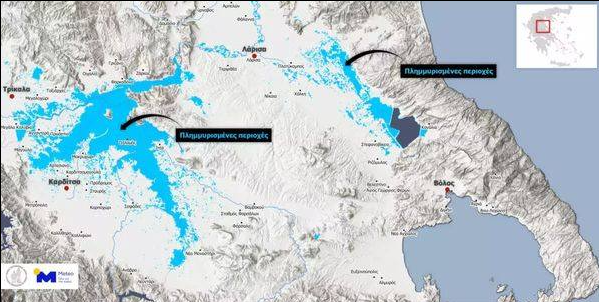 Το μεγαλύτερο μέρος των Νομών Τρικάλων και Καρδίτσας έχει κατακλυστεί από τα νερά χειμάρρων και παραποτάμων του Πηνειού. Στην Ανατολική Θεσσαλία, η έκταση της Λίμνης Κάρλα είναι σχεδόν ίση με την έκταση που είχε πριν την αποξήρανσή της το 1962.