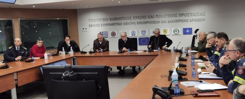 - Στη σύσκεψη συμμετείχαν ο Υπουργός Προστασίας του Πολίτη, Παναγιώτης Θεοδωρικάκος, ο Αναπληρωτής Υπουργός Εσωτερικών Στέλιος Πέτσας, ο Υφυπουργός Κλιματικής Κρίσης και Πολιτικής Προστασίας Ευάγγελος Τουρνάς, ο Υφυπουργός Προστασίας του Πολίτη Ελευθέριος Οικονόμου, ο Γενικός Γραμματέας Πολιτικής Προστασίας Βασίλειος Παπαγεωργίου, ο Αρχηγός του Πυροσβεστικού Σώματος Αντιστράτηγος Γεώργιος Πουρναράς και ο Υπαρχηγός, Αντιστράτηγος Μάριος Αποστολίδης, ο Επιτελάρχης, Αντιστράτηγος Χρήστος Λάμπρης, ο Αρχηγός της Ελληνικής Αστυνομίας, Αντιστράτηγος Κωνσταντίνος Σκούμας, ο Προϊστάμενος Κλάδου Τάξης/ΑΕΑ, Υποστράτηγος Γεώργιος Μιχαλόπουλος, ο Προϊστάμενος Επιτελείου/ΑΕΑ, Αντιστράτηγος Ελευθέριος Γκαρίλας, ο Διευθυντής Τροχαίας Αττικής Ταξίαρχος Χρήστος Παπαφιλίππου, ο Διοικητής ΕΣΚΕΔΙΚ, Υποστράτηγος Θεόδωρος Βάγιας, ο Διευθυντής Σχεδιασμού Αντιμετώπισης Εκτάκτων Αναγκών της Γενικής Γραμματείας Πολιτικής Προστασίας Δημήτρης Αλεξανδρής, ο πρόεδρος του ΕΚΑΒ Νίκος Παπαευσταθίου, η Εθνική Μετεωρολογική Υπηρεσία (ΕΜΥ) και η επιστημονική ομάδα μετεωρολόγων.