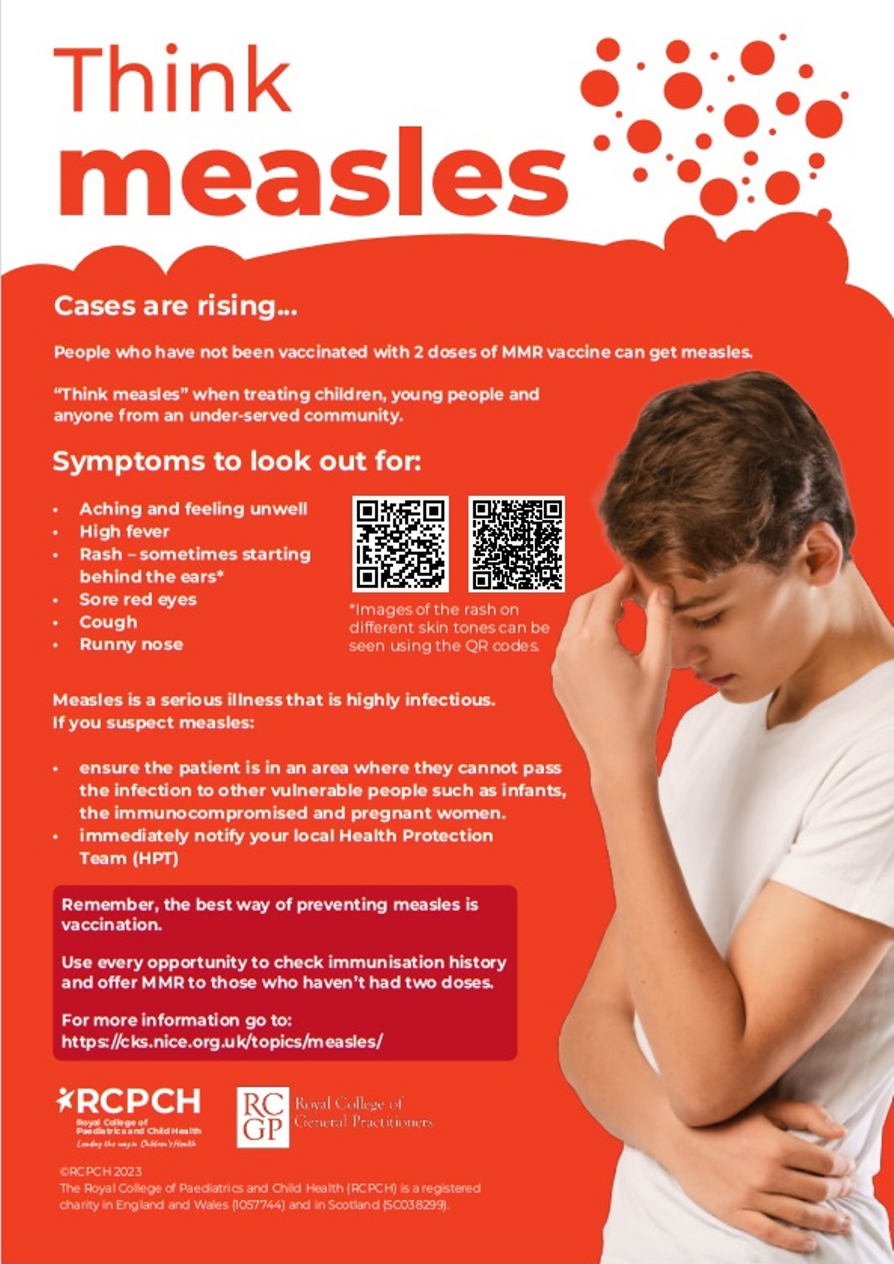 Τα βασικά βήματα διαχείρισης των ύποπτων κρουσμάτων έχουν συμπτυχθεί σε μία αφίσα με τίτλο «Σκέψου την ιλαρά» (Think measles), που δημιούργησαν το RCPCH και το RCGP για να αναρτηθεί σε όλα τα ιατρεία.