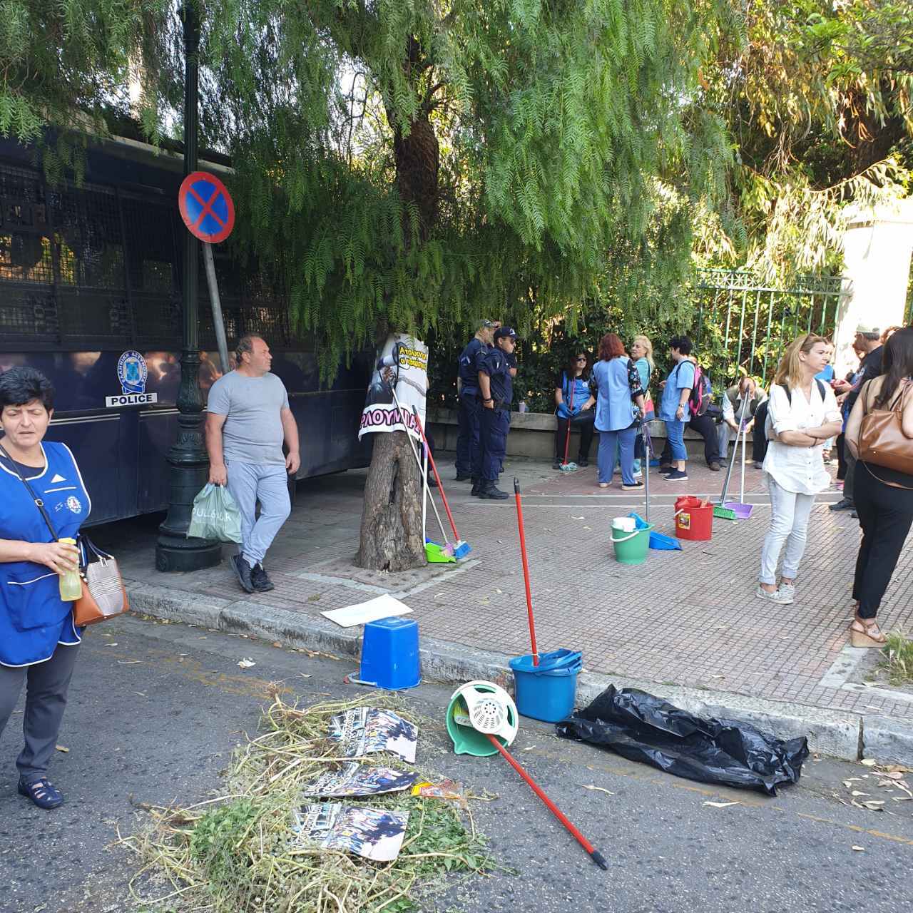 Καθαρίστριες Δρομοκαϊτειου: Με σφουγγαρίστρες και σκούπες έξω από το Μαξίμου