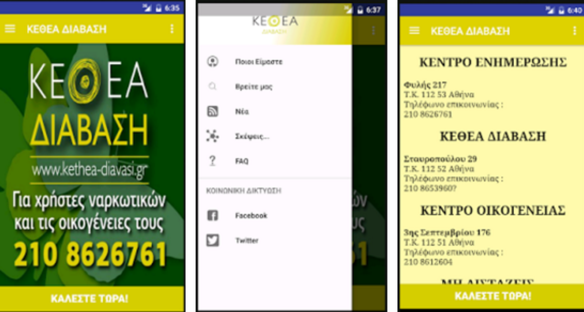 Όσο καλή και να μας φάνηκε η ιδέα, υπήρχε και αντικειμενική δυσκολία της δημιουργίας της, μια και κανένας μας δεν γνώριζε να κάνει κάτι ανάλογο. Ετσι η ομάδα μεγάλωσε, ενισχύθηκε και μπορέσαμε μόνοι μας να κάνουμε την ιδέα μας πράξη. Φτιάξαμε μια εφαρμογήγια κινητά τηλέφωνα, ώστε να δίνει την δυνατότητα σε όποιον την έχει εγκαταστήσει, με ένα πάτημα στο πεδίο «Καλέστε τώρα», να συνδέεται άμεσα με το κέντρο ενημέρωσης καισυμβουλευτικής του ΚΕΘΕΑ ΔΙΑΒΑΣΗ.