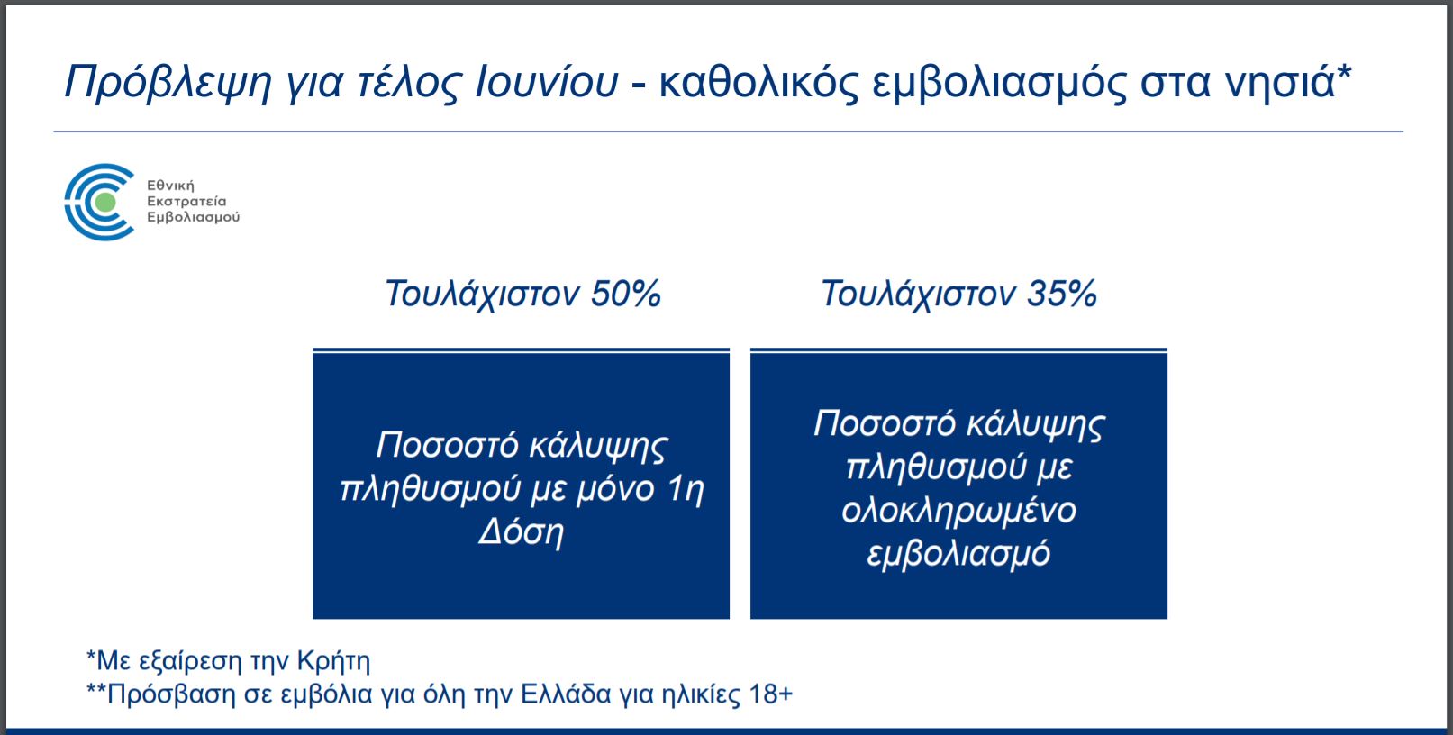 Επίσης, σε άλλα 36 νησιά με πληθυσμό κάτω των 10.000 κατοίκων, ολοκληρώνεται ο εμβολιασμός μέχρι τα τέλη Μαΐου