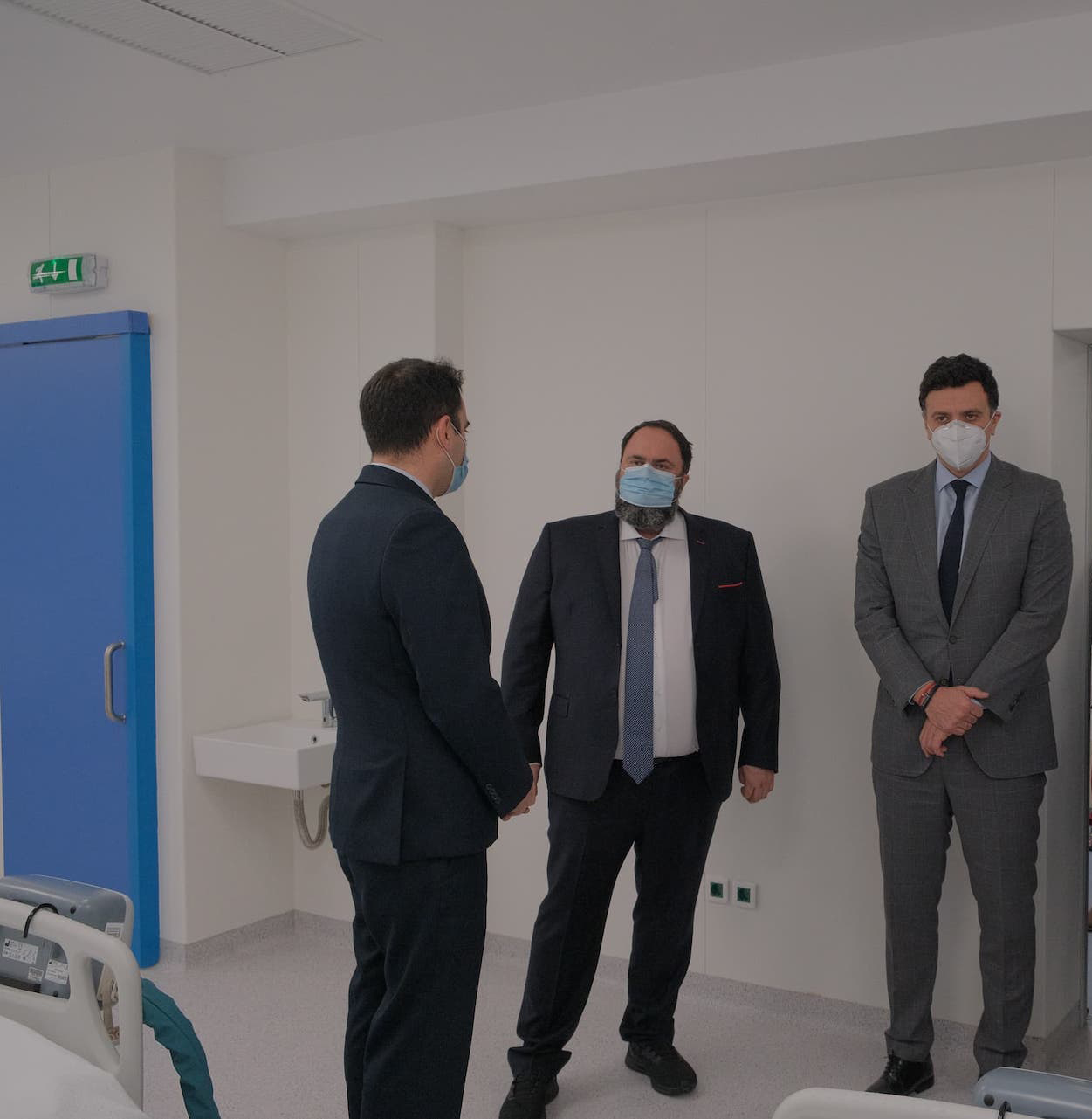 Ο Υπουργός Υγείας Βασίλης Κικίλιας εγκαινίασε τις 12 νέες κλίνες που παραδόθηκαν στη Μονάδα Εντατικής Θεραπείας του Γενικού Κρατικού Νοσοκομείου Νίκαιας. Παρόντες ήταν και οι δωρητές, κ.κ. Ευάγγελος Μαρινάκης, Αγγελική Φράγκου και της Κ. Κωτσιοπούλου, από την εταιρεία ΙΟΝ Α.Ε.