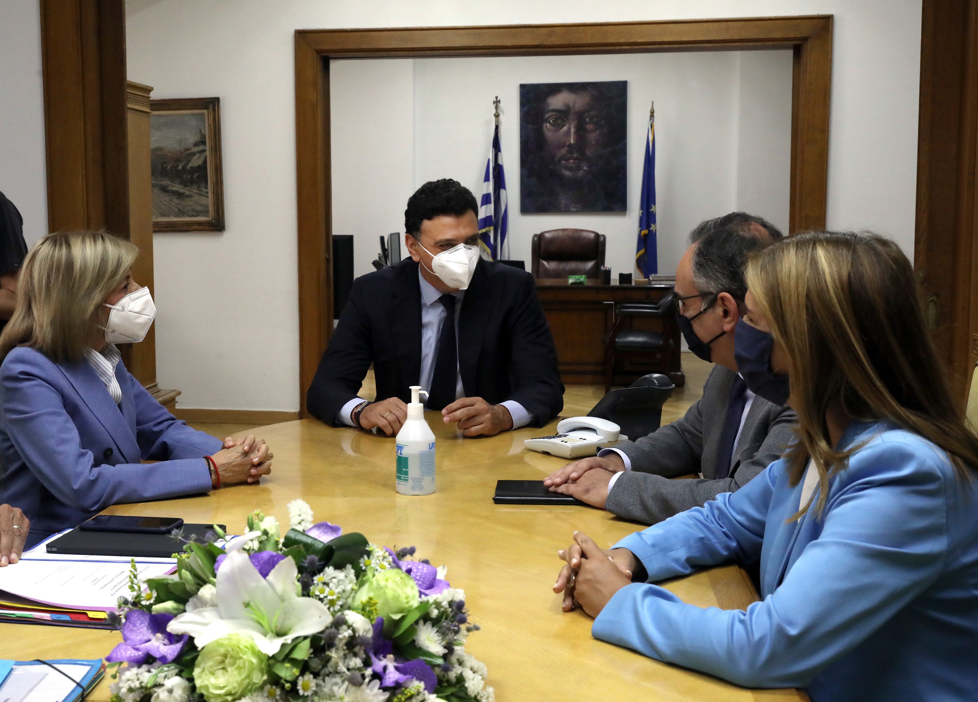 Ο υπουργός Υγείας Βασίλης Κικίλιας (2Α), ο αναπληρωτής υπουργός Υγείας Βασίλης Κοντοζαμάνης (2Δ) και η υφυπουργός Υγείας Ζωή Ράπτη (Δ) συμμετέχουν σε συνάντηση με την Ευρωπαία Επίτροπο Υγείας και Ασφάλειας Τροφίμων Στέλλα Κυριακίδου (Α), στο υπουργείο Υγείας , Τρίτη 22 Ιουνίου 2021. ΑΠΕ-ΜΠΕ/ΑΠΕ-ΜΠΕ/Αλέξανδρος Μπελτές