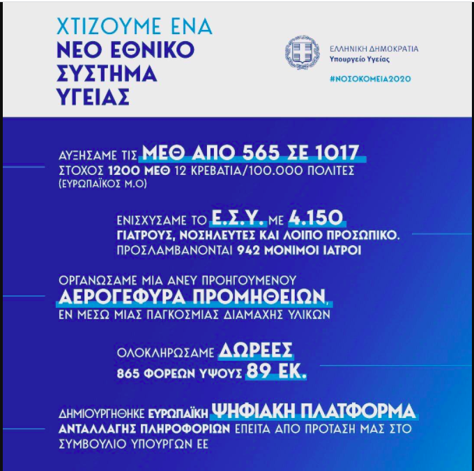 Ενημερώνοντας τα μέλη της Επιτροπής Κοινωνικών Υποθέσεων της Βουλής σχετικά με τις εξελίξεις για την αντιμετώπιση της πανδημίας του κορονοϊού αλλά και τα σχέδια του υπουργείου για την επόμενη μέρα μετά τη κρίση, ο κ. Κικίλιας επισήμανε ότι δέσμευση και προτεραιότητα της κυβέρνησης της ΝΔ είναι η ενίσχυση του Εθνικού Συστήματος Υγείας μέσα από ένα εθνικό στρατηγικό σχέδιο το οποίο είναι σε εξέλιξη.