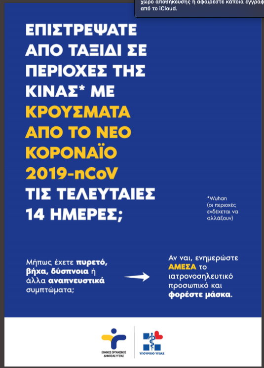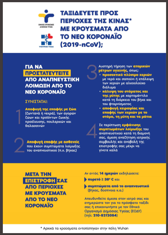 Νέες αφίσες του ΕΟΔΥ για την προφύλαξη πολιτών και ταξιδιωτών από τον νέο κοροναϊό