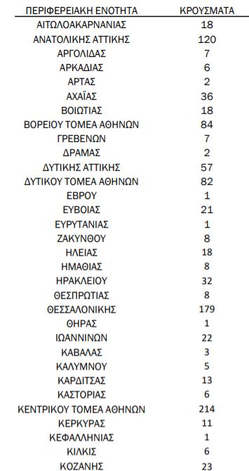 Από τα 1.514 νέα κρούσματα τα 774 εντοπίστηκαν στην Αττική και τα 179 στη Θεσσαλονίκη.