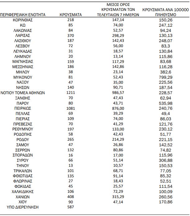 Πώς κατανέμονται τα κρούσματα στην ελληνική επικράτεια