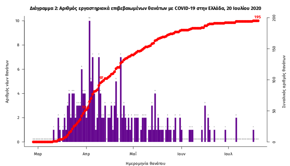 Σήμερα υπάρχει ένας νέος θάνατος ασθενούς από τη νόσο COVID19, ενώ από την έναρξη της επιδημίας έχουν καταγραφεί συνολικά 195 θάνατοι. Η μέση ηλικία των ασθενών που απεβίωσαν είναι 76 έτη.