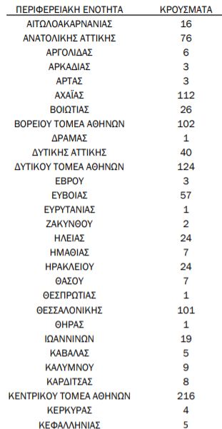 Συγκεκριμένα εντοπίστηκαν στην υπόλοιπη Ελλάδα: