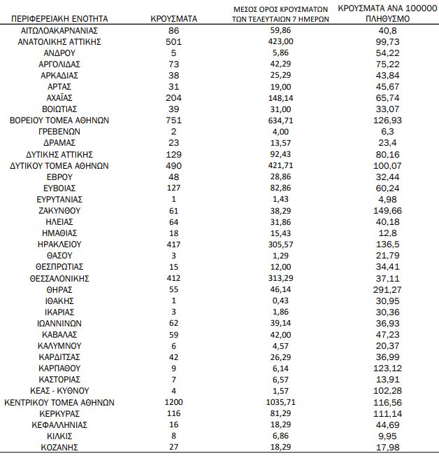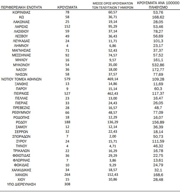 Πώς κατανέμονται τα κρούσματα στην ελληνική επικράτεια