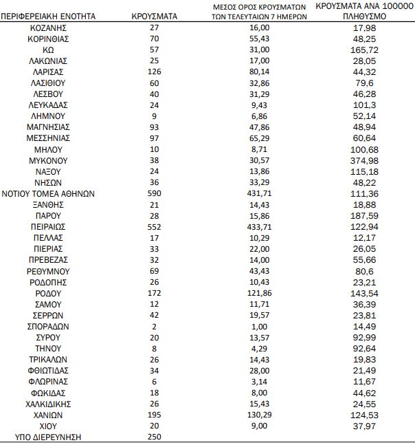 Πώς κατανέμονται τα κρούσματα στην ελληνική επικράτεια