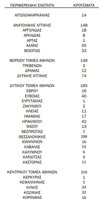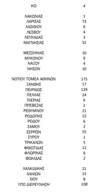 Τα νέα εργαστηριακά επιβεβαιωμένα κρούσματα της νόσου που καταγράφηκαν τις τελευταίες 24 ώρες είναι 2.411, εκ των οποίων 7 εντοπίστηκαν κατόπιν ελέγχων στις πύλες εισόδου της χώρας. Ο συνολικός αριθμός των κρουσμάτων ανέρχεται σε 313.444 (ημερήσια μεταβολή +0.8%), εκ των οποίων 51.3% άνδρες. Με βάση τα επιβεβαιωμένα κρούσματα των τελευταίων 7 ημερών, 59 θεωρούνται σχετιζόμενα με ταξίδι από το εξωτερικό και 3.265 είναι σχετιζόμενα με ήδη γνωστό κρούσμα.