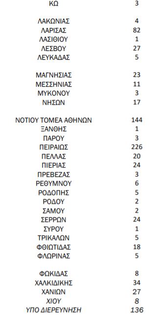 θεωρούνται σχετιζόμενα με ταξίδι από το εξωτερικό και 1.843 είναι σχετιζόμενα με ήδη γνωστό κρούσμα