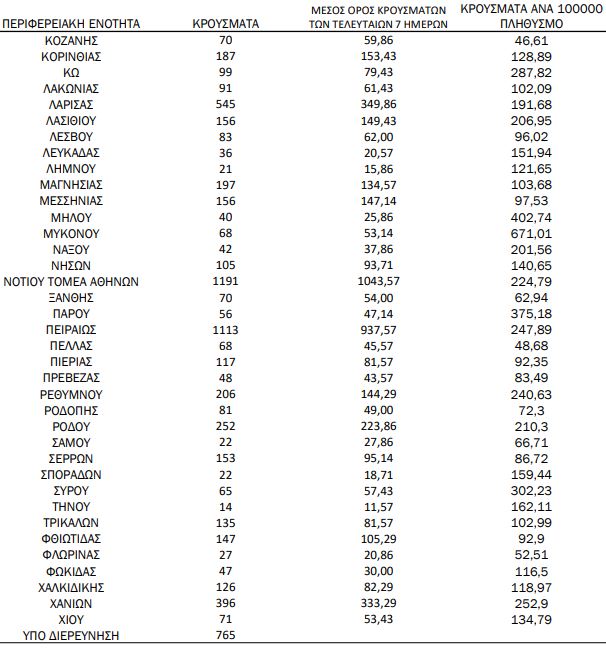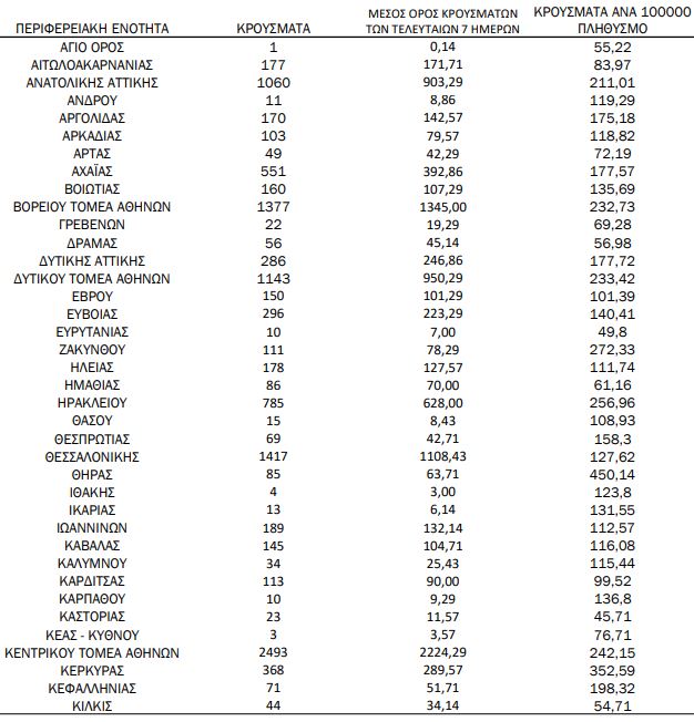 Πώς κατανέμονται τα κρούσματα στην ελληνική επικράτεια