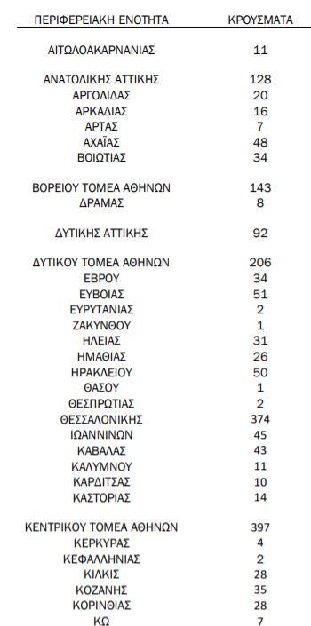 Στην Αττική εντοπίστηκαν 1.305 κρούσματα, στην Θεσσαλονίκη βρέθηκαν ακόμα 374 νέες μολύνσεις, 48 στην Αχαΐα, 35 στην Κοζάνη και 86 στη Λάρισα.