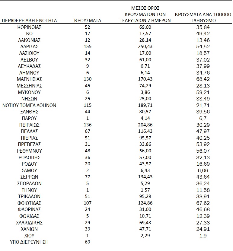 Πώς κατανέμονται τα κρούσματα ανά γεωγραφική περιοχή