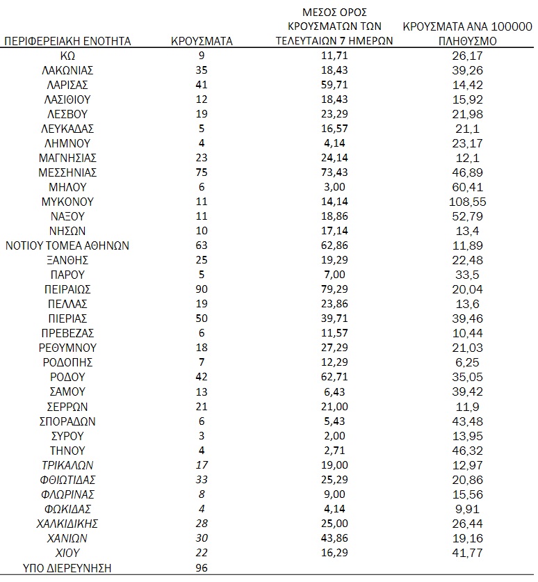 Τα μεγάλα αστικά κέντρα, αρχίζουν σιγά σιγά να γίνονται και πάλι “πρωταγωνιστές” στις λίστες των νέων κρουσμάτων. Αναλυτικά: