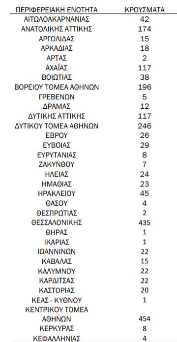 Από τα 3,228 νέα κρούσματα, τα 1.578 εντοπίστηκαν στην Αττική, 435 στη Θεσσαλονίκη και 117 στην Αχαϊα.