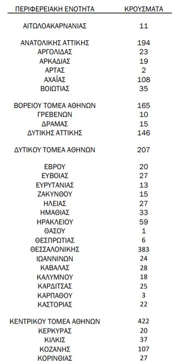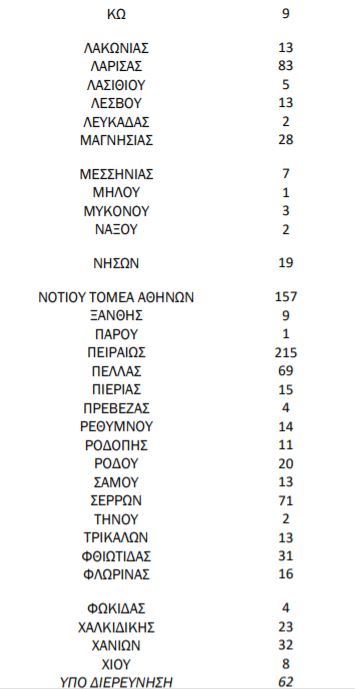Στην Αττική εντοπίστηκαν 1.525 νέα κρούσματα, ενώ στη Θεσσαλονίκη 383, στην Αχαϊα 108 και στην Κοζάνη 107.