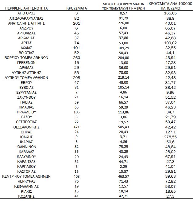 Πώς κατανέμονται τα κρούσματα στην ελληνική επικράτεια