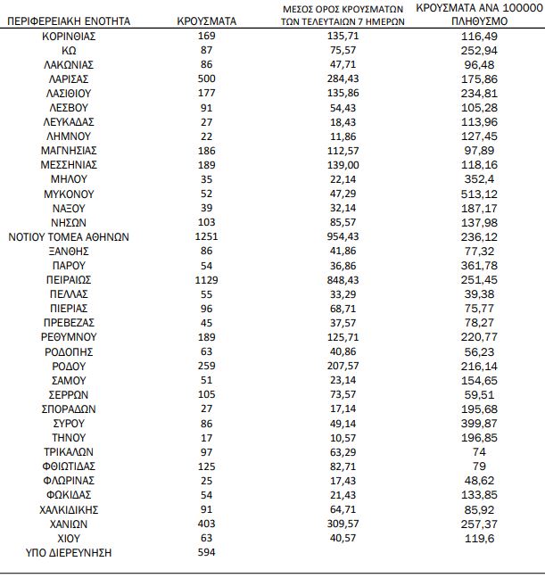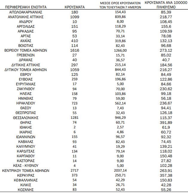 Πώς κατανέμονται τα κρούσματα στην ελληνική επικράτεια