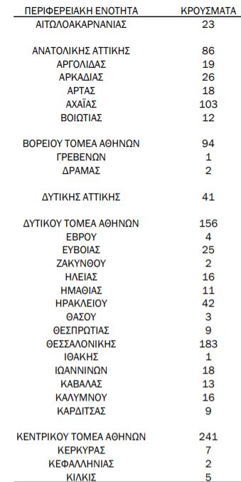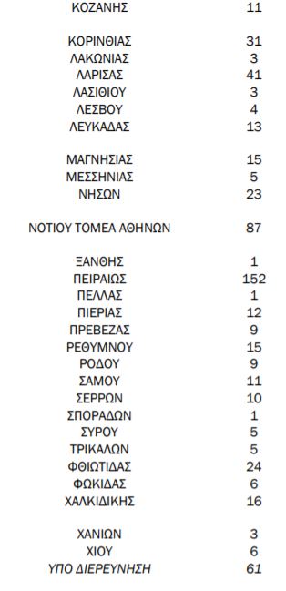 Στην υπόλοιπη Ελλάδα, τα κρούσματα έχουν ως εξής: