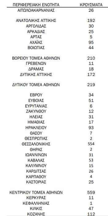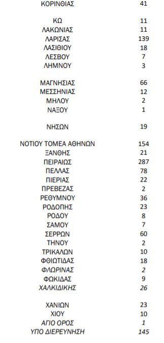 Με βάση τα επιβεβαιωμένα κρούσματα των τελευταίων 7 ημερών, 55 θεωρούνται σχετιζόμενα με ταξίδι από το εξωτερικό και 2.401 είναι σχετιζόμενα με ήδη γνωστό κρούσμα.