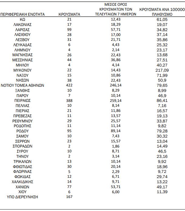 Πώς κατανέμονται τα κρούσματα στην ελληνική επικράτεια