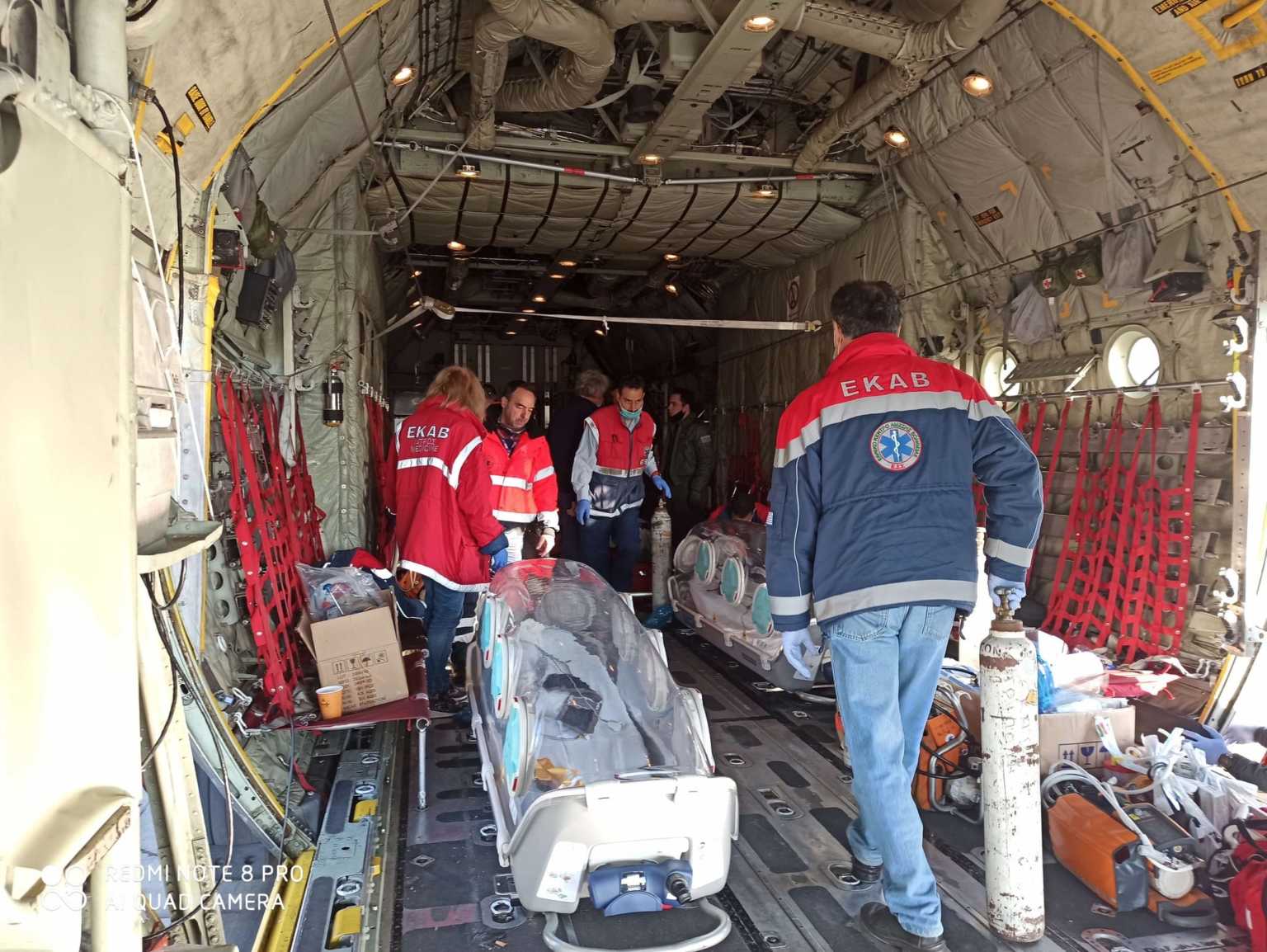 Σήμερα στις 10:00 το πρωί απογειώθηκε πτητική ομάδα του τμήματος Αεροδιακομιδών ΕΚΑΒ αποτελούμενη από τρεις ιατρούς και τρεις διασώστες με C-130 προκειμένου να διακομίσουν τρία διασωληνωμένα περιστατικά Covid-19 από το αεροδρόμιο της Καβάλας στην Αθήνα.