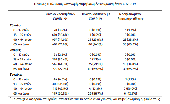 Η μέση ηλικία των κρουσμάτων είναι 49 έτη (εύρος 0 έως 102 ετών).