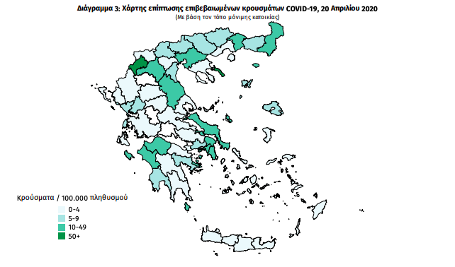 Η τελευταία επιδημιολογική έκθεση του ΕΟΔΥ, με την καταγραφή των στοιχείων της επιδημιολογικής επιτήρησης της νόσου από το νέο κορωνοϊό (COVID19), με βάση τα δεδομένα που έχουν δηλωθεί στον ΕΟΔΥ και καταγραφεί μέχρι τις 20 Απριλίου 2020 (ώρα 15:00) είναι η εξής: