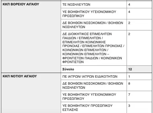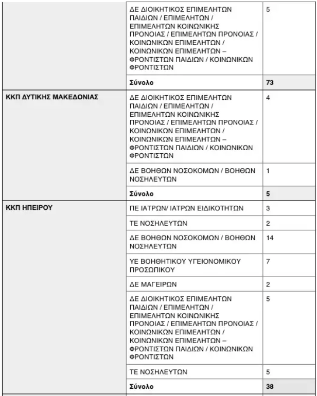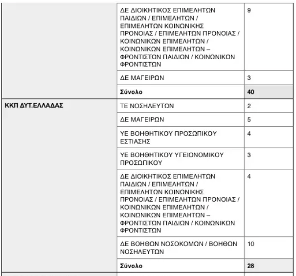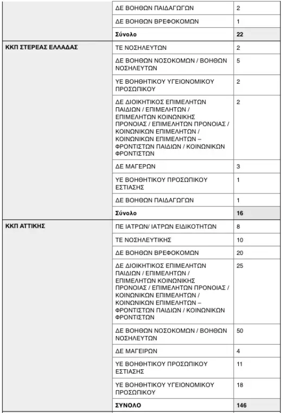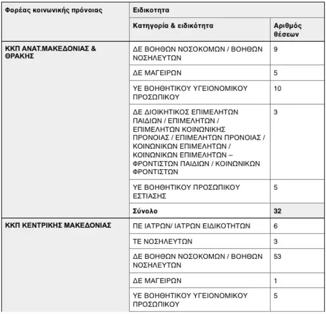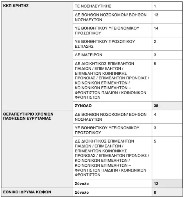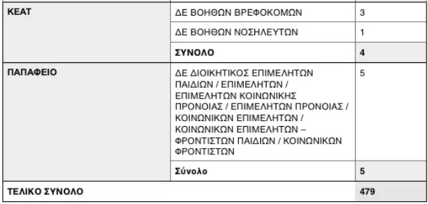 Παρακάτω παρουσιάζονται οι προβλεπόμενες θέσεις ανά φορέα. Σε αυτές δύναται εντός τριμήνου να προστεθούν επιπλέον σε περίπτωση έκτακτης ανάγκης. Συνολικά ο αριθμός των θέσεων δε δύναται να ξεπερνά τις 500.