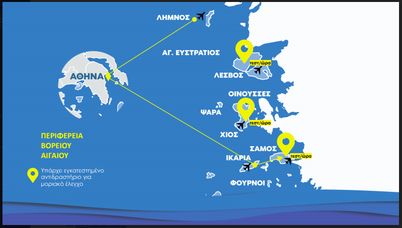 Στο πλαίσιο αυτό θα μεταφερθούν δύο μεγάλοι μοριακοί αναλυτές σε νησιά, ενώ θα υπάρξει, επίσης, και ακτινωτός σχεδιασμός για μείωση των απαιτούμενων μεταφορών δειγμάτων. Σε έκτακτες περιπτώσεις, θα αναπτυχθούν και τα μορισκά τεστ στα νησιά, και συγκεκριμένα στα εξής: Μύκονος, Ζάκυνθος, Κέρκυρα, Κύθηρα, Λήμνος, Σκιάθος, Κεφαλονιά, Κάρπαθος, Μήλος, Ικαρία, Σαντορίνη και Κως. Τα νησιά αυτά θα καλύπτονται από μοριακό αναλυτή.